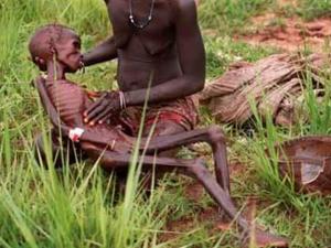 Jacqui suddenly shifts the gear to neutral, and the jeep slows down, jumps out, falling to the ground. She picks herself up and runs towards what seems to be a pillow on the ground. It is an abandoned baby in last stage of malnutrition. Jacqui shoos off the flies in the baby’s eyes, and goes back to the jeep.