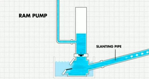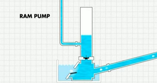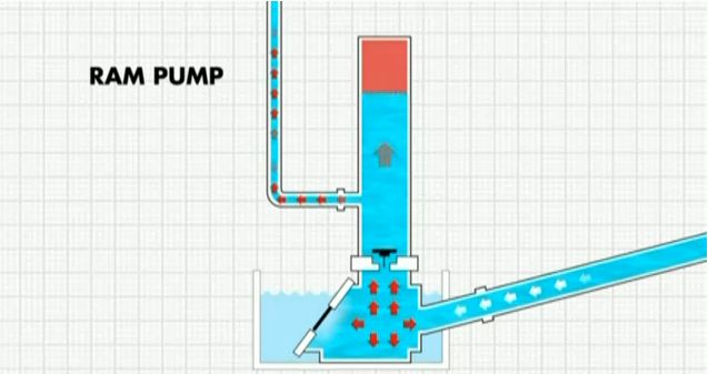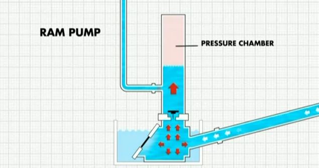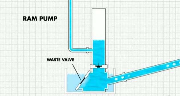 Photo 7. Vertical valve closes, forcing water upward through the delivery pipe.