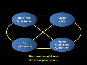 The fact that WWF seems to be doing an honest-to-goodness conservation program in the Coral Triangle shows that perhaps there are only a handful at the top who are aware of the conflict-of-interest issue. The rest are true and aggressive green advocates. A few discerning ones may perhaps be looking the other way in the name of their career and advocacy. But do donors ‘suggest’ policy guidelines to recipients? Well-funded conservation programs benefitting locals yield a foothold if oil is suddenly discovered. It is a normal USAID modus operandi to use development programs as a quid pro quo for US interests in Third World nations. In other words, USAID also aids the US. The map of CTSP turf is juxtaposed against the map of oil resources. Multinationals extracting oil in Third World nations, giving a trickle and taking the lion’s share, has resulted in the trend of the host country nationalizing oil extraction, provided it has the capital and technology to do it. Technology transfer can come from a sympathetic oil country like Venezuela, through a bilateral equitable-sharing agreement. Capital can come from a government loan. That way, multinationals do not hold Third World nations by the throat. The oil hegemony of rich nations is slowly shrinking.