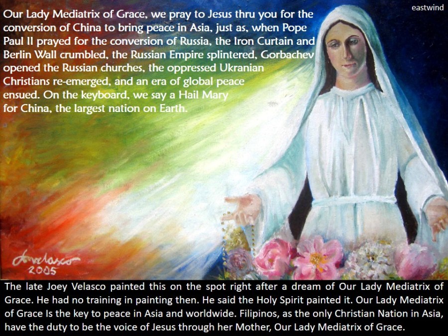 Miraculous rose petal depicting the Holy Trinity Our Lady Mediatrix of Grace, Lipa City, Philippines, Pray for us and for the conversion of China.