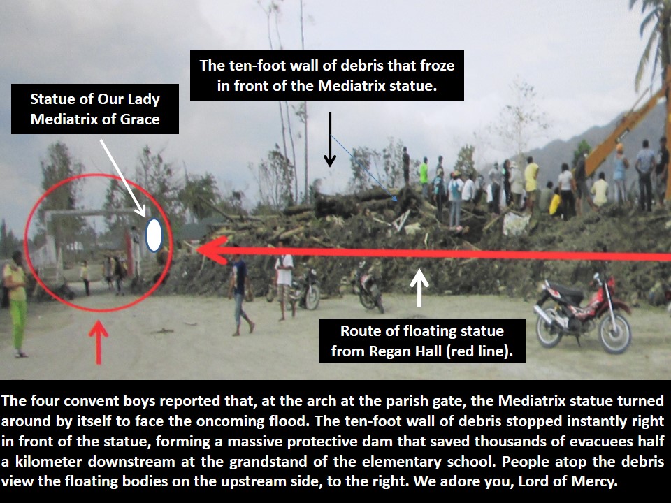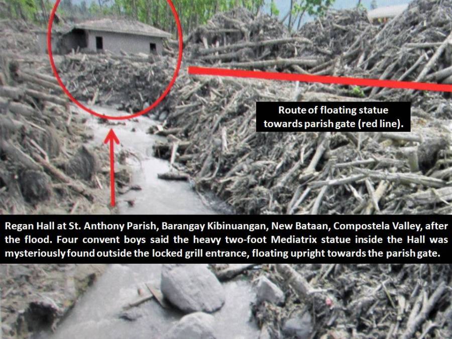 SECOND MEDIATRIX MIRACLE SAVES THOUSANDS Miracle of the Flood in Compostela Valley On December 4, 2012, 4 days before the Feast of the Immaculate Concepcion, like an angel of death, super-typhoon Pablo ravaged the town of New Bataan, Compostella Valley. CLICK PHOTO TO VIEW BLOW UP