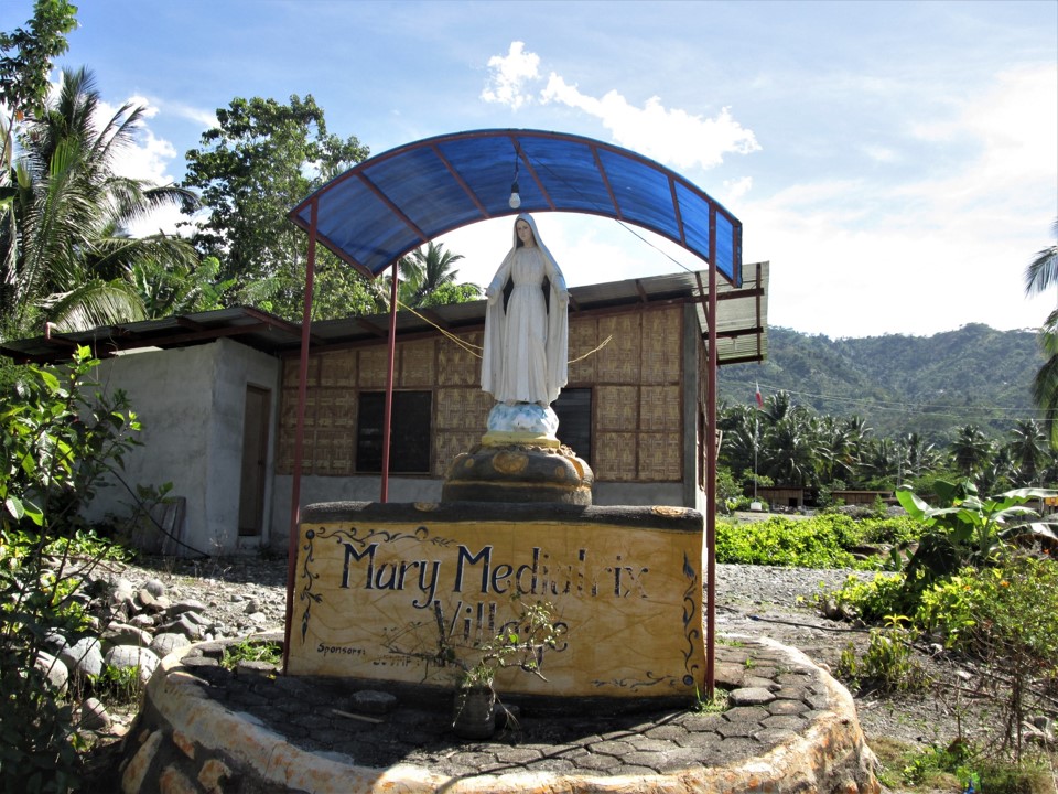 Our Lady guards the entrance to the Mary Mediatrix Village. All residents are survivors of the flood. All have a Mediatrix statuette or photo or altar in their homes. Our Lady is in their homes and in their hearts.