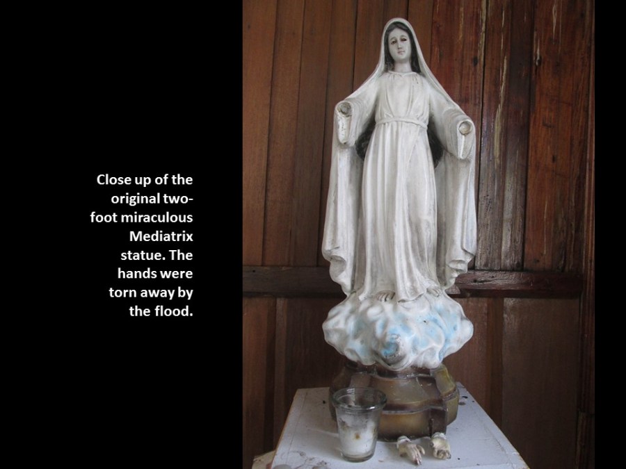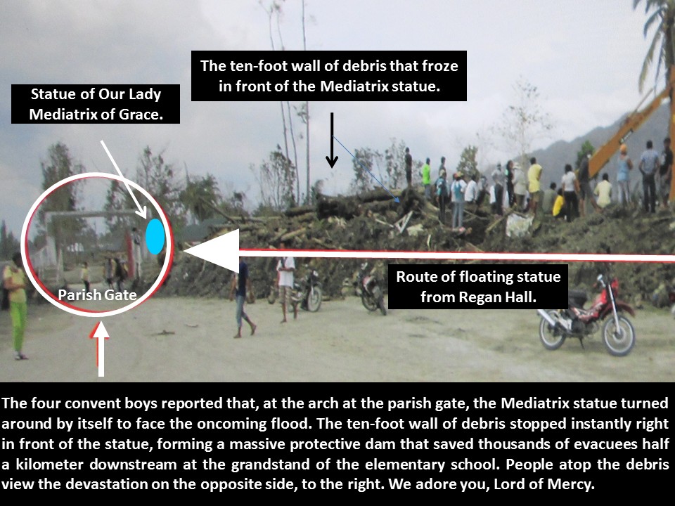 Prior to the flood, a mysterious woman warned the four boys to pray to Our Lady Mediatrix, predicting that a disaster similar to that in Cagayan de Oro would soon take place. The four prayed devoutly together.