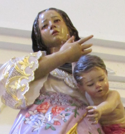 The statue, commissioned to famed sculptor Willy Layug of Betis, Pampanga, the Filipino Michelangelo, portrays Mama Mary as the ‘Brown Madonna’, a Filipino version of the Blessed Virgin. The Santo Nino and a boy, a Yolanda survivor, are reaching out for each other.