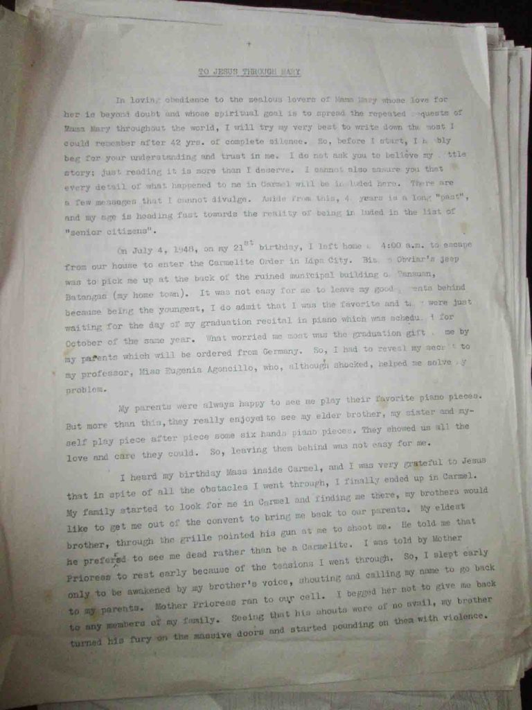 The author was given permission to publish the second diary by the nephew of Sr. Teresing, to whom she entrusted the second diary before she died. Readers can download the manuscript, given here in 36 photos at the end of this article.