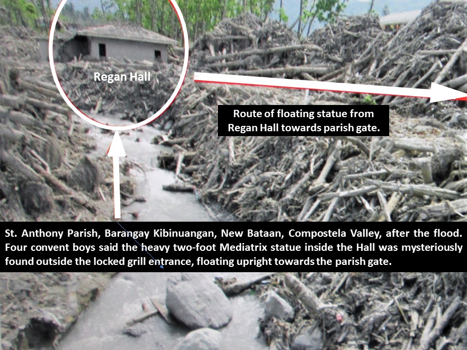 Prior to the flood, a mysterious woman warned four altar boys to pray to Our Lady Mediatrix, predicting that a disaster similar to the in Cagayan de Oro would soon take place. The four prayed devoutly together obediently.