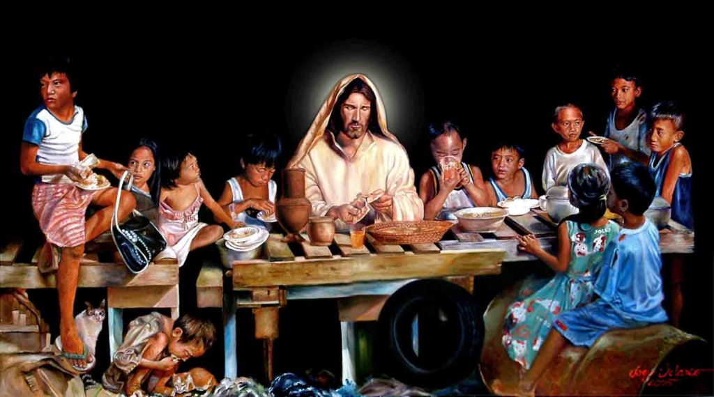 Joey Velasco’s painting HAPAG NG PAG-ASA (Table of Hope), a digital replica of which he gave to the author. The apostles in the Last Supper were true-to-life squatter-kid models. Read about how he recruited and wrote about the squatter kids – https://eastwindjournals.com/2021/03/26/squatter-kids-pose-as-christs-disciples/.