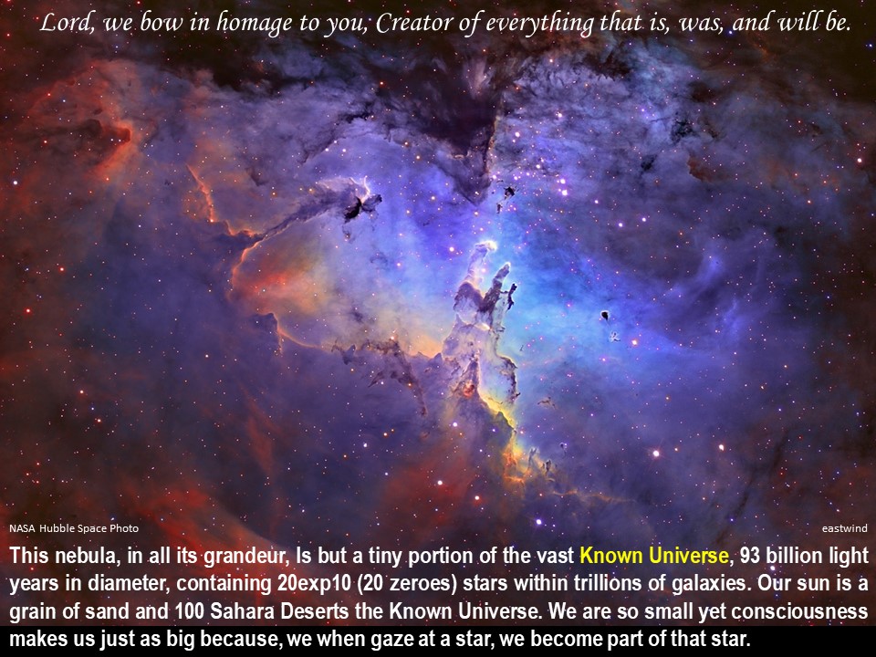 GALLERY OF DRAMATIC HUBBLE SPACE PHOTOS. (Set in verses In praise of the Creator of the Universe.)