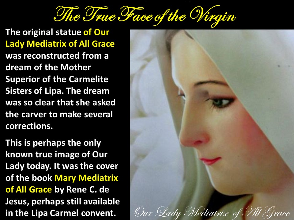 Browse through the mini-library of Mediatrix articles – photos of miraculous rose petals, the diary of visionary Sr. Teresing Castillo, miracles of the sun and of the flood, history, etc. – https://eastwindjournals.com/2022/02/15/library-of-mediatrix-articles-in-eastwindjournals-com/