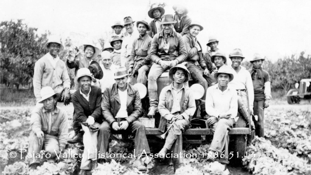 Photo above. Filipino farm workers in Pajaro Valley, near Watsonville, California, September 1939. Photo © Mary Oliver/Pajaro Valley Historical Association.
