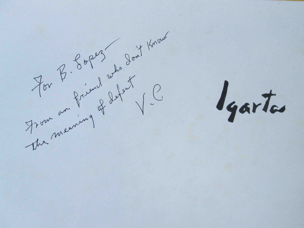 One night, he asked himself, “Igarta, are you willing to die for art?” In deep depression one cold winter evening, totally drunk, he lit a bonfire of all his paintings in the last few years. Priceless paintings, that could support him for many years, went up in smoke. He said, “Never again will I paint.” Up to the time I met him decades later in New York, he never touched a brush for four decades. The essential Igarta died that winter evening.