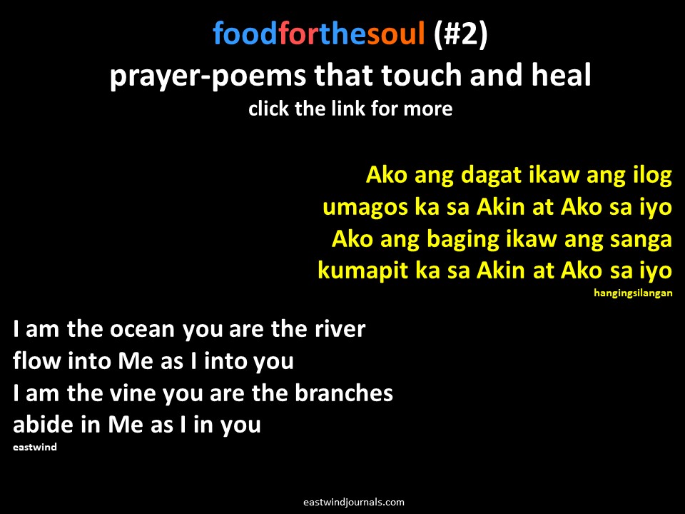 Excerpts from the mini-book ‘foodforthesoul’, by Bernie V. Lopez (eastwind). Hard copy available by courier (250 pesos only) – eastwindreplyctr@gmail.com.